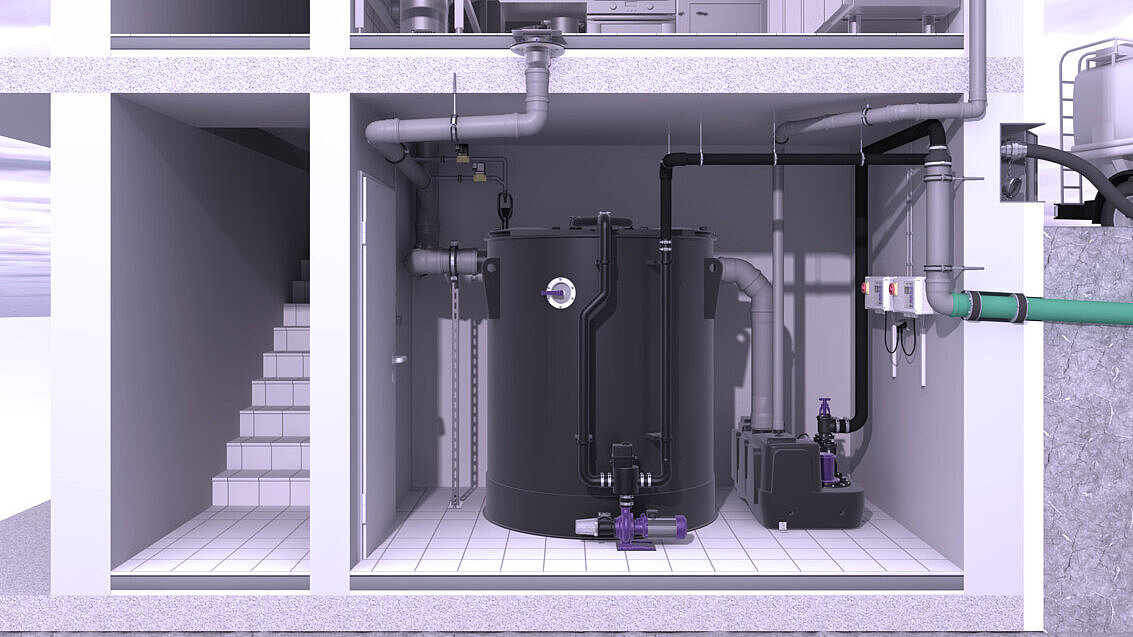 Pumping out the grease separator during opening hours can lead to unappetising odours. Our grease separators with programme-controlled disposal provide a remedy here. They have a remote control for the control unit, which is installed on the outside of the building. The homogenisation of the container contents and pumping out can be conveniently controlled from there - completely independent of operating hours or access to the inside of the building.