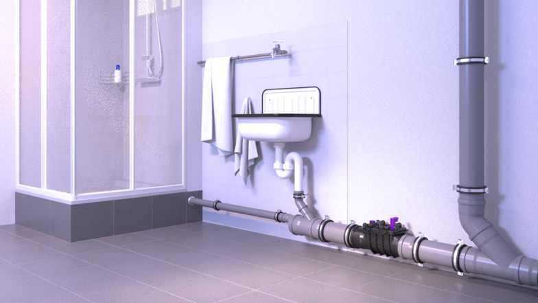 The Staufix Basic is recommended for protecting individual drainage objects such as a washbasin or washing machine from backflow. It can be easily installed in an exposed position - regardless of whether in a version without, with one or with two backflow flaps. The following installation example shows what this can look like:
