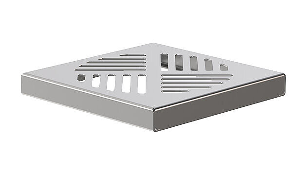 Suitable for barefoot areas, brushed surface, anti-slip R 12 (DIN 51130), assessment group C (DIN 51097), holes 8× 8 mm, insertion depth 25 mm, thickness 2 mm, class K 3