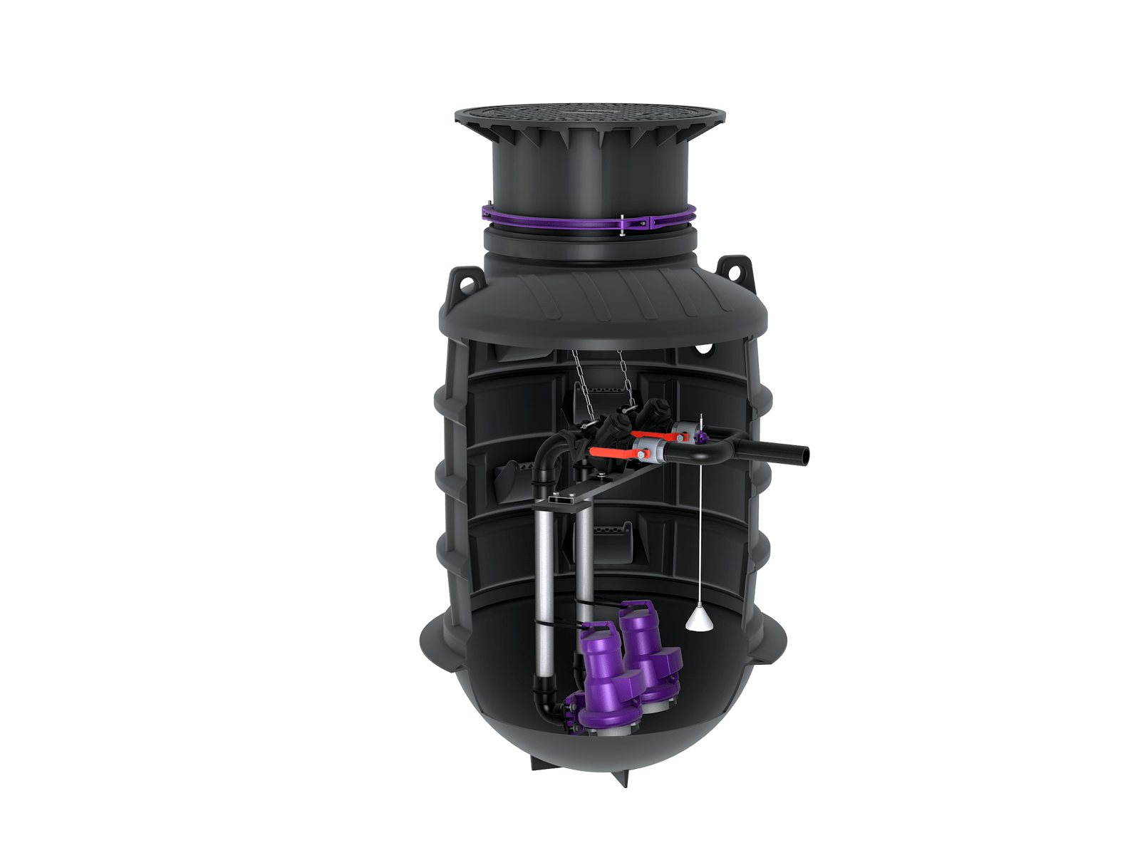 In contrast to lifting stations that are primarily installed in buildings, pumping stations are installed in a service connection chamber underground outside the building. This not only increases the usable space in basements, but also enhances the comfort of living – thanks to the absence of pump noise.